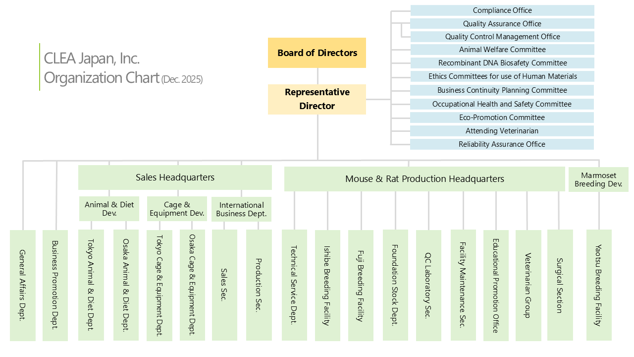 | Business Description | Production and sales of experimental animals Production and sales of experimental animal diets Production and sales of equipment related with experimental animal Services related with experimental animals (quarantine, various tests, model animal creation) Consultation and execution of design, operation, and direction of experimental animal facilities Consultation and contraction of operating experimental animal facilities Import and Export of the experimental animal related |