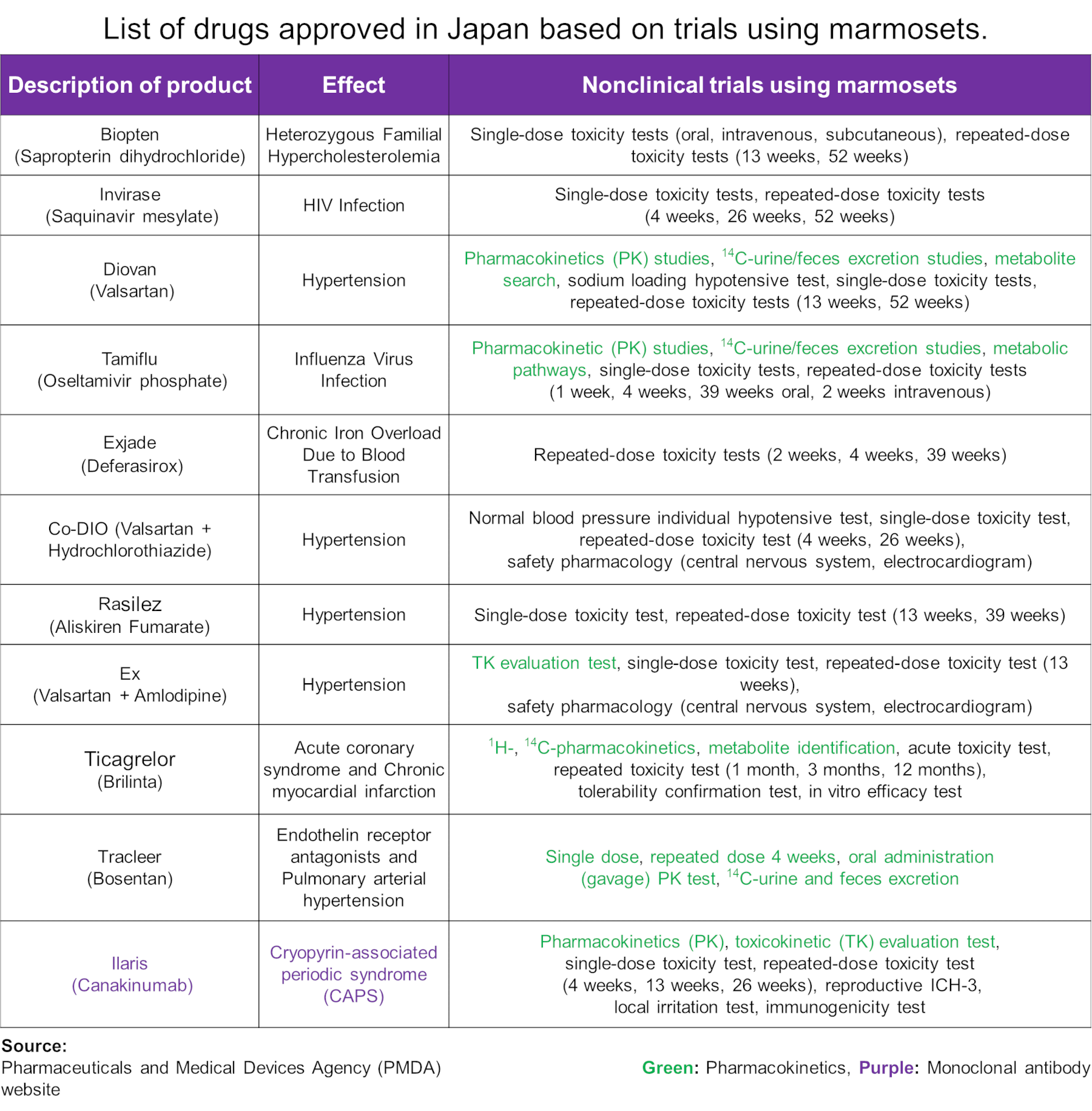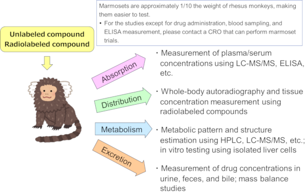 In recent years, there has been an increasing demand for small-scale, affordable, and easy-to-obtain marmoset pharmacokinetic data. This is based on the accumulated data that shows that marmosets are similar with humans in terms of their physiology, anatomy, and drug metabolism.