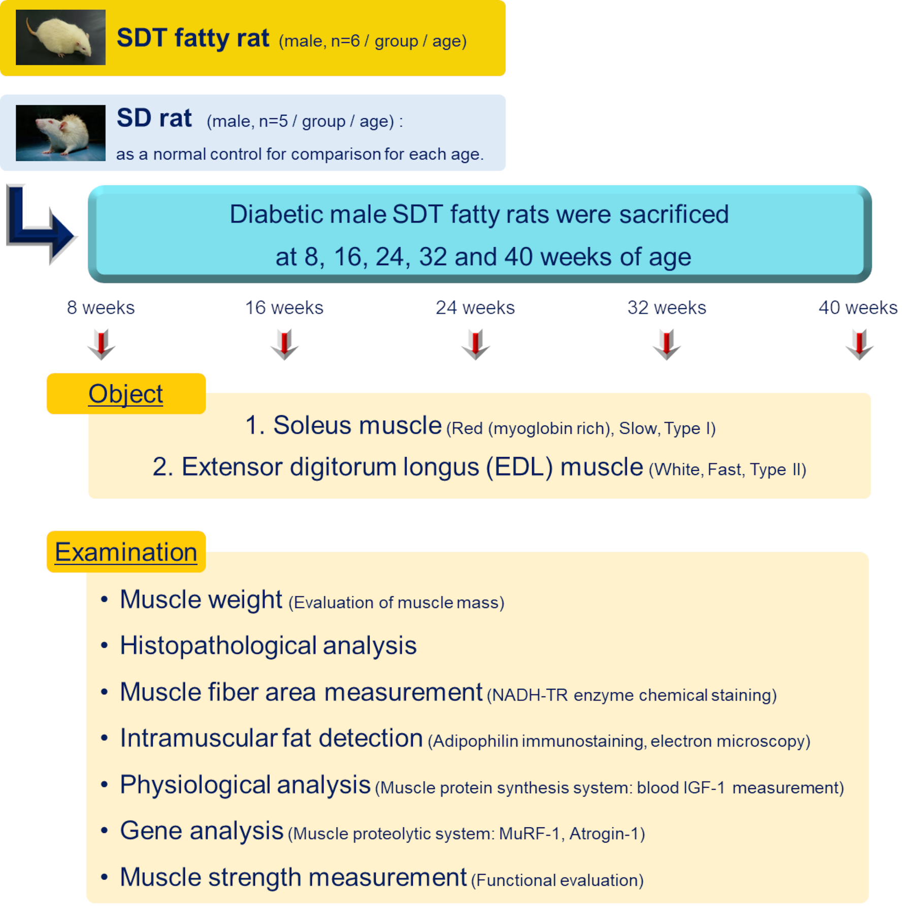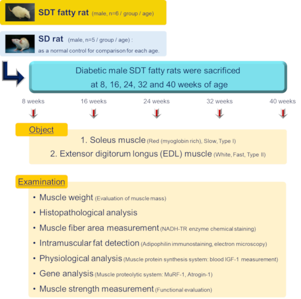 SDT fatty rat, spontaneously type 2 diabetes animal model, shows the symptoms of secondary sarcopenia related with diabetes and obesity.